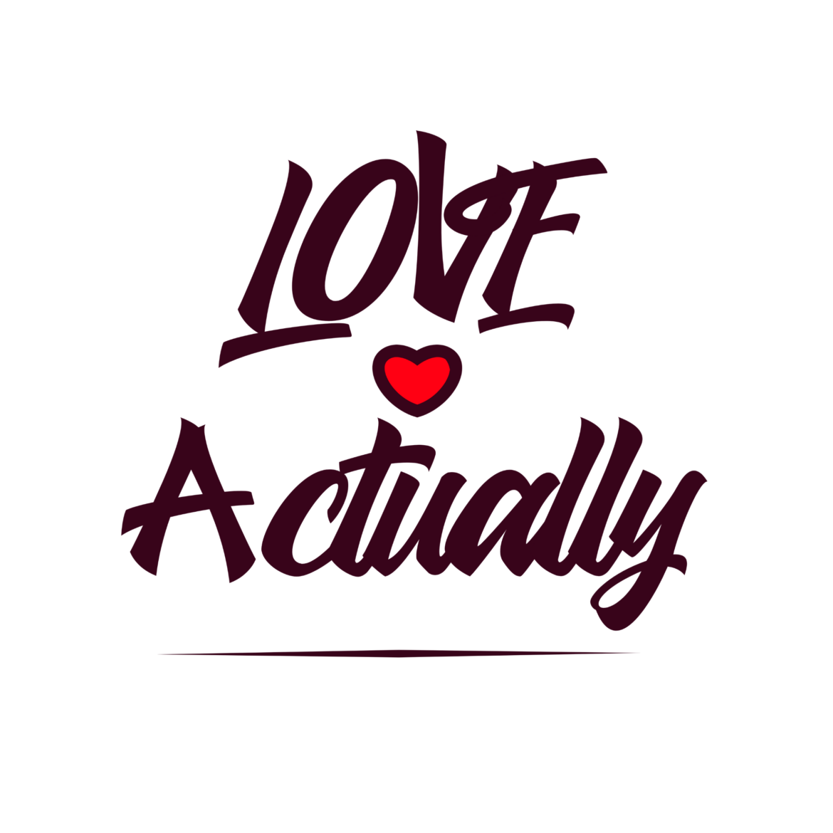 • Hand-drawn “Love Actually” design with a bold script style and a warm heart accent. Created with a soft, expressive feel that fits anyone who enjoys playful lettering and romantic themes without going over the top.