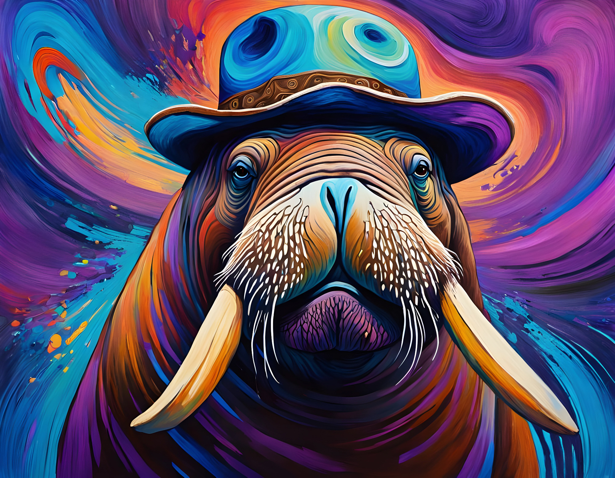 Meet Reggie Walrusino, the debonair strategist and visionary thinker of the legendary Walrusino Crew. This artwork captures Reggie’s inherent charm by making his Panama stand out, setting the tone.