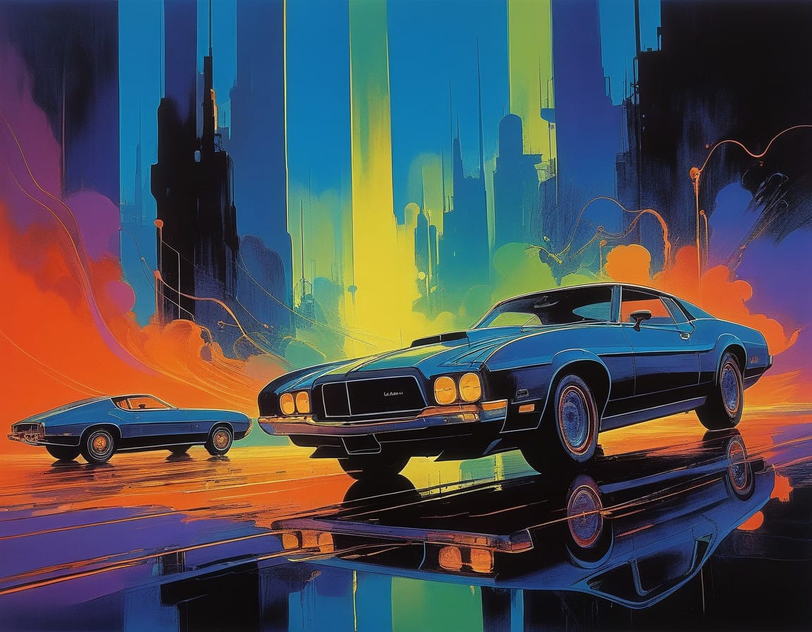 Dive headfirst into a sun-baked street corner where vintage muscle meets simmering tension. You From Around Here isn’t just a piece of art, it’s a visual showdown, a freeze-frame of impending rivalry rendered in bold, comic-book-style glory.